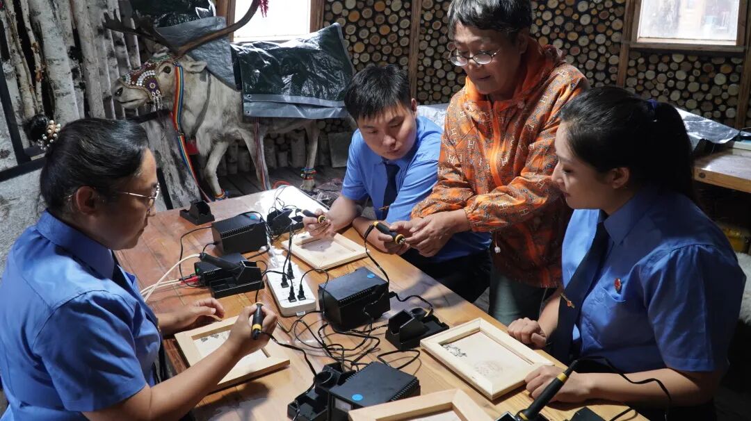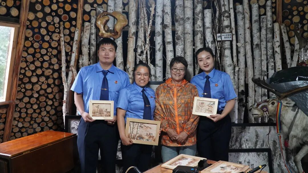 金秋时节,敖鲁古雅乡的白桦林被染成金黄,樟子松的清香在秋风中弥漫。8月8日,根河市人民检察院深入敖鲁古雅乡,联合非遗传承人宋仕华老师开展检徽入画融非遗主题党日活动,将意识形态工作融入非遗传承实践,以文化为桥铸牢中华民族共同体意识,同时履行文化保护检察职责。