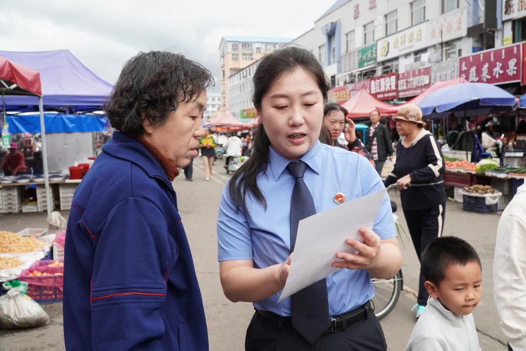 活动中,检察人员深入根河市中心人员密集区,通过发放宣传手册、现场答疑解惑、悬挂宣传标语等方式,向山货商户、来往行人普及人身安全、爱林护林的理念,听民意、汇民生、聚民力,让宣传入心入脑,森林防护的根基在群众,关键在意识。