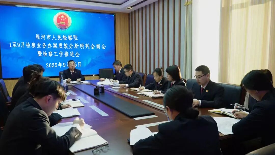 近日,根河市人民检察院召开2025年1-9月办案质效分析研判暨检察工作推进会,党组书记、检察长史铭丰主持会议,班子成员及各部门正副职参会。