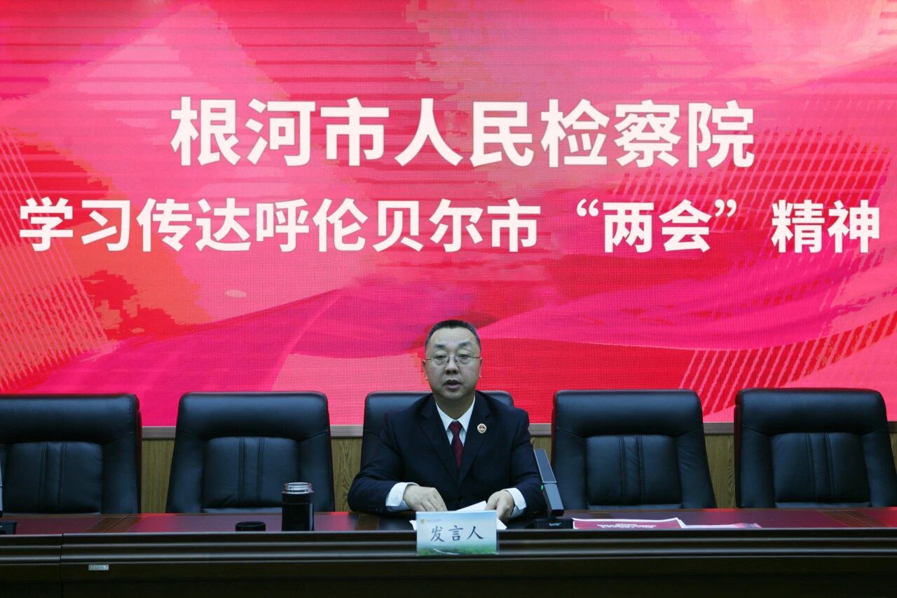2026年1月29日,根河市人民检察院组织召开“学习传达呼伦贝尔市‘两会’精神”专题会议。根河市人民检察院党组书记、检察长史铭丰秉持求真务实、严谨审慎的工作作风,以高度的政治责任感和检察使命感,认真传达呼伦贝尔市“两会”精神相关内容,精准解读精神实质与工作要求,为全院检察工作有序开展、落地落实明确方向、划定重点。