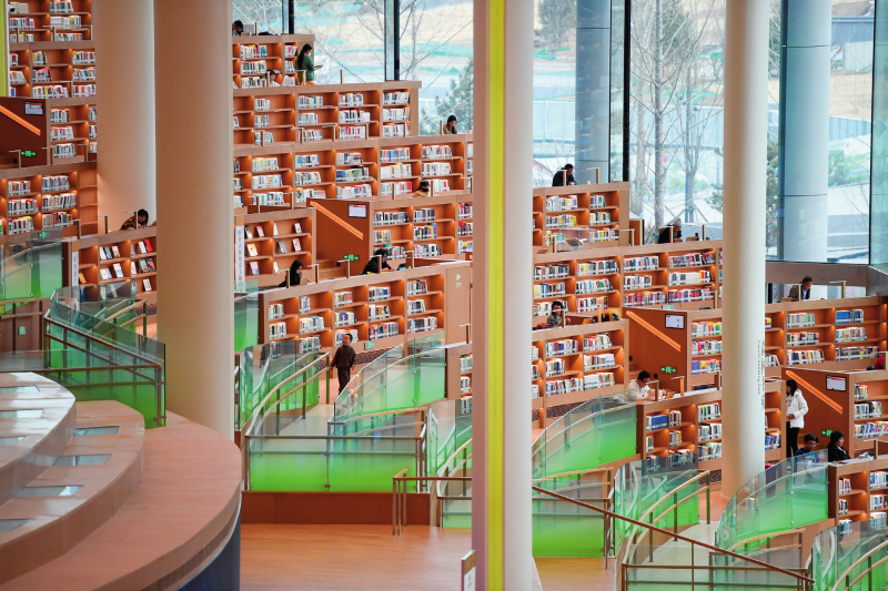 读者在北京城市图书馆内参观阅览(2024年2月28日摄)鞠焕宗摄/本刊