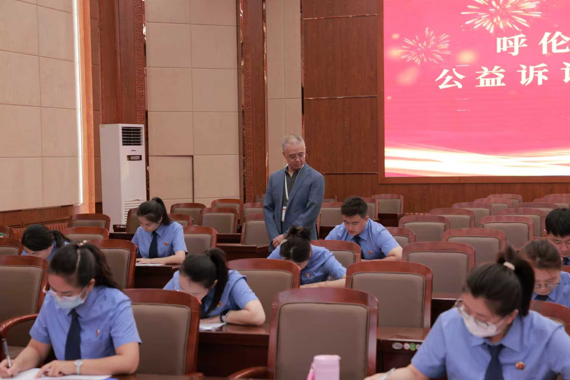 呼伦贝尔市检察院党组书记、检察长秦虎及在家班子成员到场指导。本次业务竞赛特邀内蒙古自治区检察院公益诉讼检察部门副主任王敏现场观摩指导。