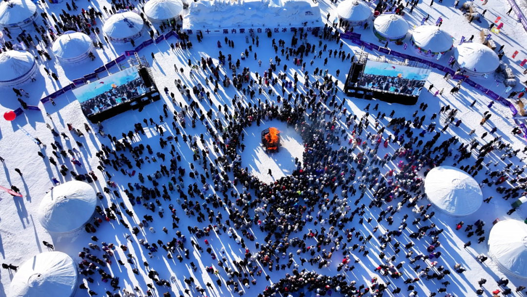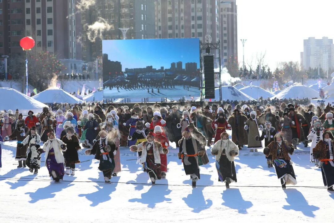 当《母亲是中华》的旋律响起,各族儿女手拉手同歌共舞,汇聚成中华民族团结奋进的炽热同心,草原人民的豪情、民俗文化的交融、全民参与的欢腾,化为冬季的澎湃浪潮。