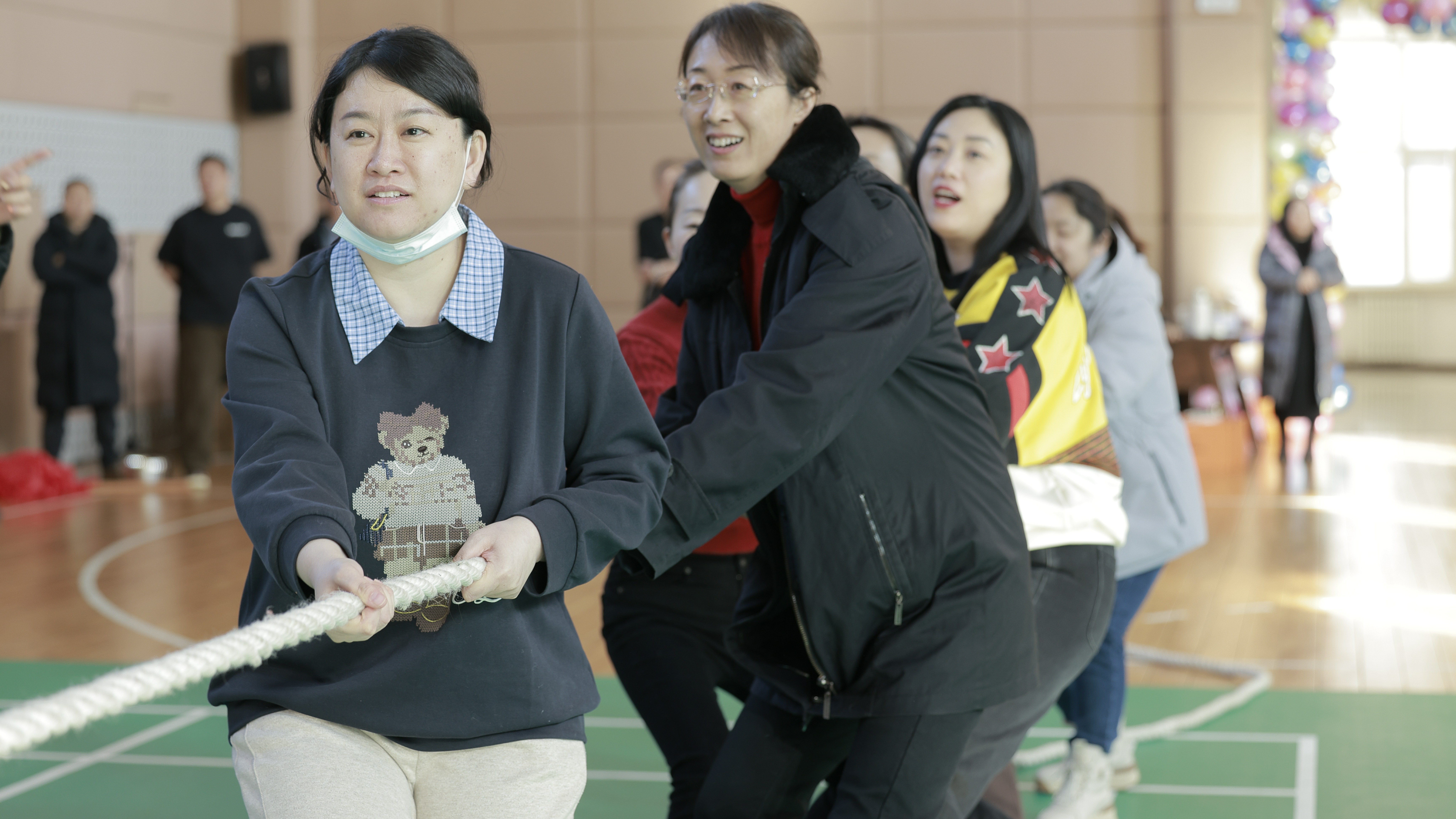 趣味拔河现场,绳绳聚力、步步同心。大家紧握长绳、脚步铿锵,心往一处想、劲往一处使,呐喊声与助威声此起彼伏,展现出凝心聚力、奋勇争先的磅礴力量,将检察队伍团结协作、攻坚克难的精神风貌展现得淋漓尽致。紧随其后的三人四足,是默契与配合的生动考验。大家并肩挽臂、步调一致,在口令与步伐的同频共振中稳步向前,步伐轻盈而坚定,默契无间、笑语盈盈,于携手同行中拉近心与心的距离,诠释同心同向、携手共进的团队情怀。