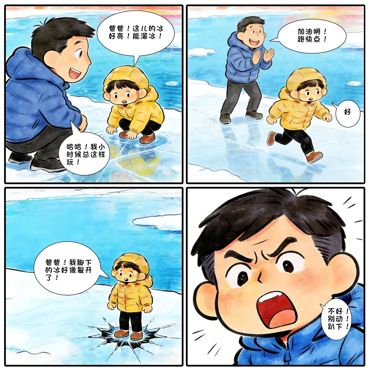 冰面脆弱,生命珍贵!远离危险,切莫踏冰!冰层之下,是刺骨寒流与致命深渊....